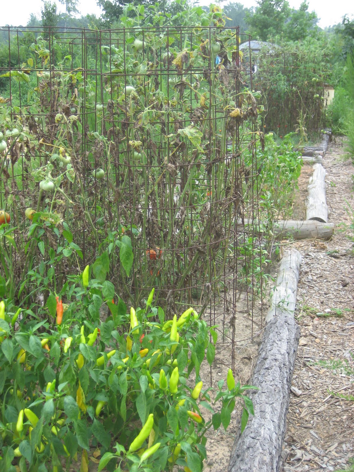 The gardens this year are coming along fairly well - even mine, although I have been rather neglectful lately with the baby to take care of. I planted around 25 tomato plants of 5 different vareties, and Paul planted many many more than that. We have canned at least 40 quarts of tomatoes and put many quarts of salsa in the freezer so far this year (thanks to the help of the Kunzlers, a family of five currently wwoofing with us). Lately, We've been enjoying tomato sandwiches with homemade mayo, pesto, and goat cheese. YUM! My favorite tomato varieties right now are Brandywine, Moonglow, and Tommy Toes. I'm also growing peppers, beans, and eggplant currently. I'm having much better luck with eggplant than I have in the past. I was also able to grow dill for the first time this year. However, the gourd and luffa vines aren't producing at all this year. I should ammend the soil well next year. Paul's feed corn and okra patches are doing well in the front garden currently.I continue to make soap with the help of our wwoofers. I sell them at the farmers' market, when I am able to go, but they are also being sold in two local stores and on the internet.